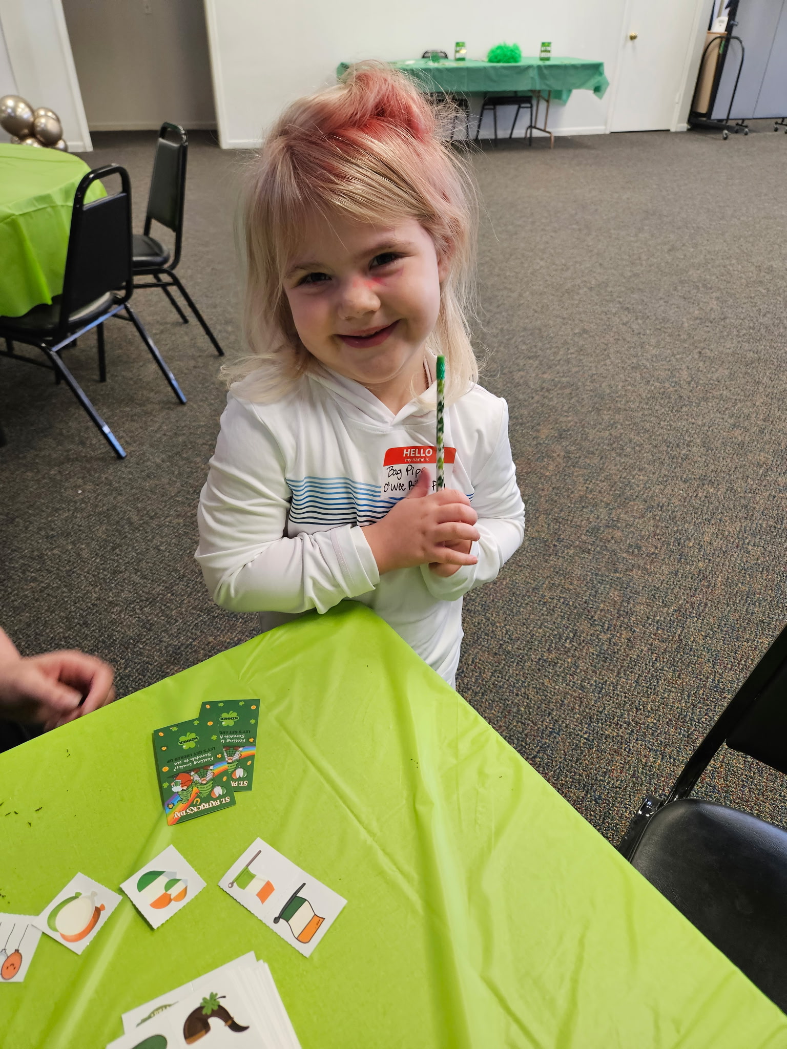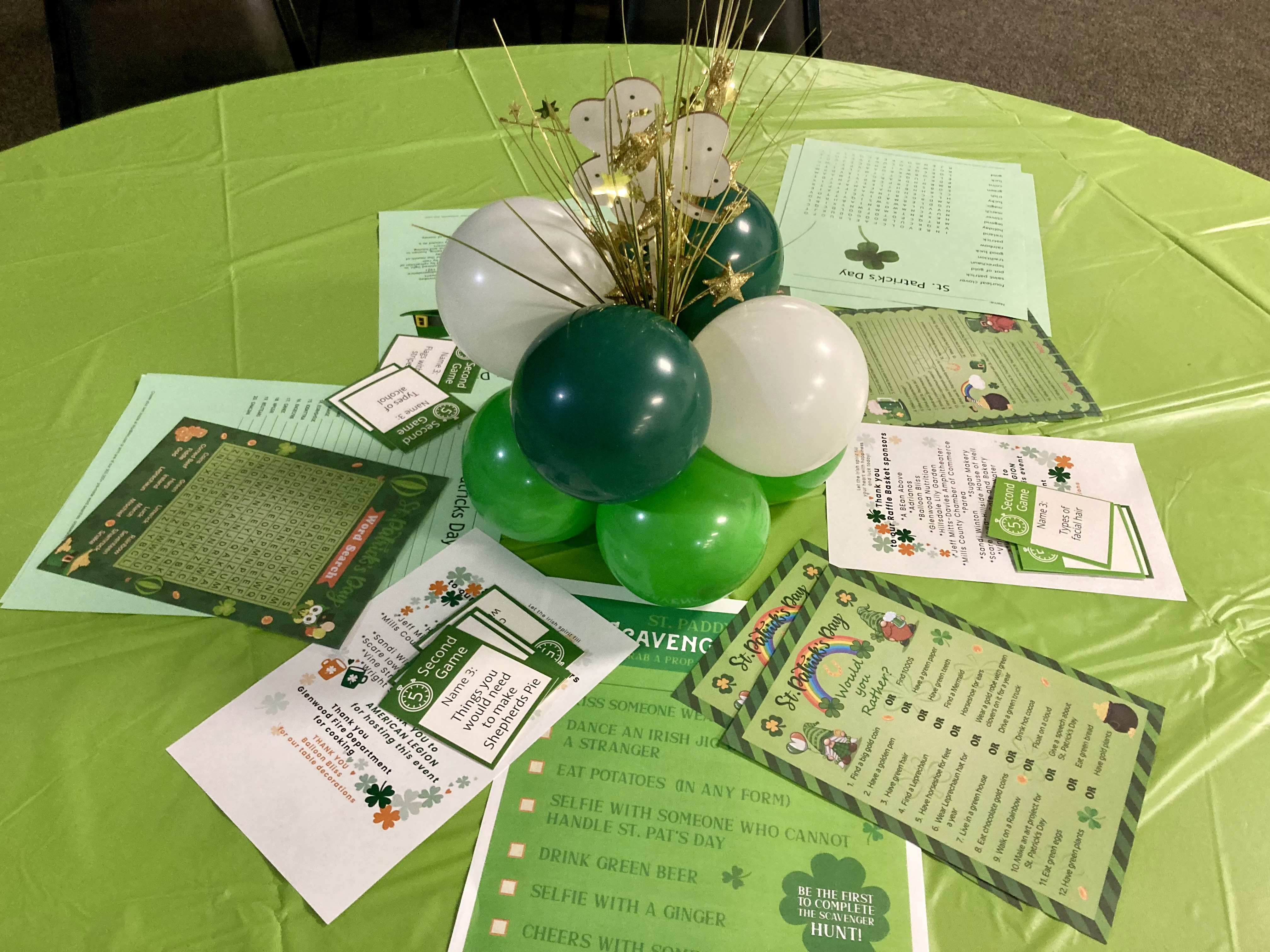Green decorations, festive balloons, and a few surprise appearances from a friendly leprechaun helped add to the St. Patrick’s Day fun. The festive balloons that brightened the hall were generously donated by Balloon Bliss Studio, a home-based business owned and operated by Jenni Tibbs.