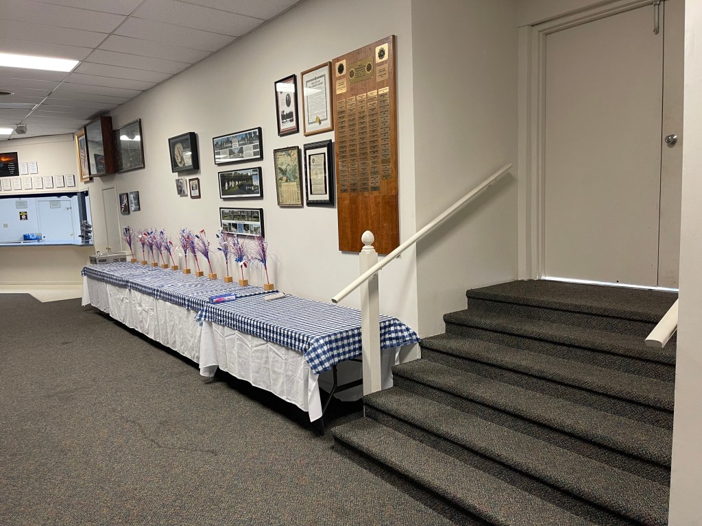 There are historical items that will not be removed from the walls or moved during events, but there are plenty of areas for selfie stations. There are large bathrooms and a large kitchen area to utilize.